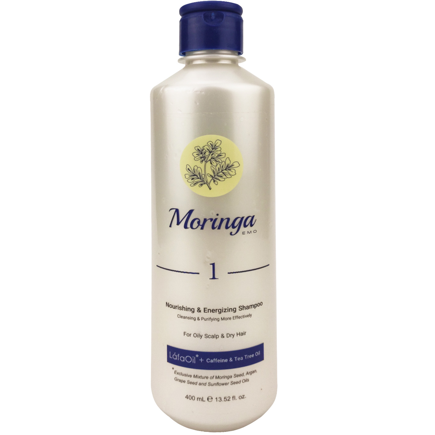 شامپو مغذی و انرژی بخش ۱ مورینگا امو مناسب پوست سر چرب و موی خشک است. این محصول در کنترل چربی پوست سر و تقویت مو نقش به سزایی دارد.